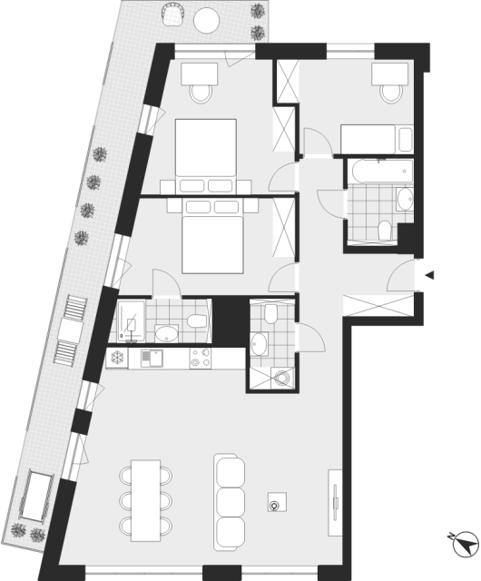 - Charakterystyka mieszkania: 94,69 m², 4 pokoje, 2 łazienki; stan: deweloperski