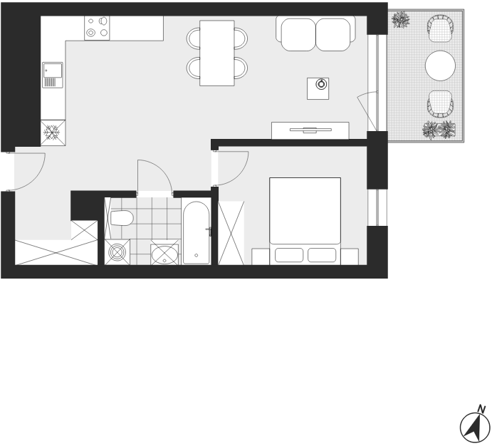 - Charakterystyka mieszkania: 44,39 m², 2 pokoje, 1 łazienka; stan: deweloperski