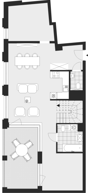 - Charakterystyka mieszkania: 123,57 m², 4 pokoje, 1 łazienka; stan: deweloperski