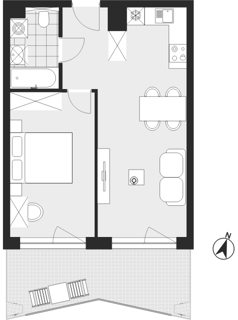- Charakterystyka mieszkania: 41,97 m², 2 pokoje, 1 łazienka; stan: deweloperski