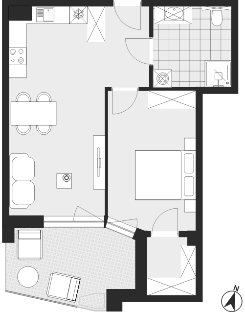 Funkcjonalne, 2-pokojowe mieszkanie z aneksem kuchennym, łazienką i tarasem z ogródkiem. Lokal znajduje się w inwestycji Semiramis w Katowicach.