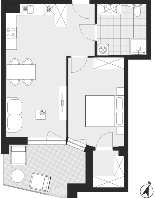 Funkcjonalne, 2-pokojowe mieszkanie z aneksem kuchennym, garderobą, łazienką i tarasem. Lokal znajduje się w inwestycji Semiramis w Katowicach.