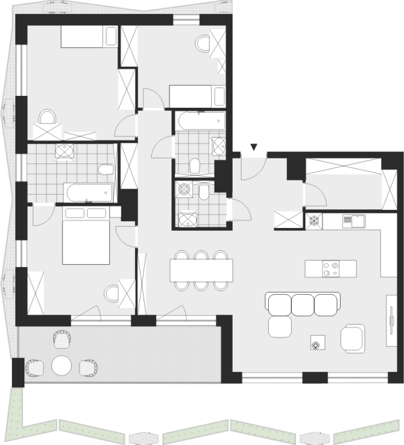 - Charakterystyka mieszkania: 110,03 m², 4 pokoje, 2 łazienki; stan: deweloperski